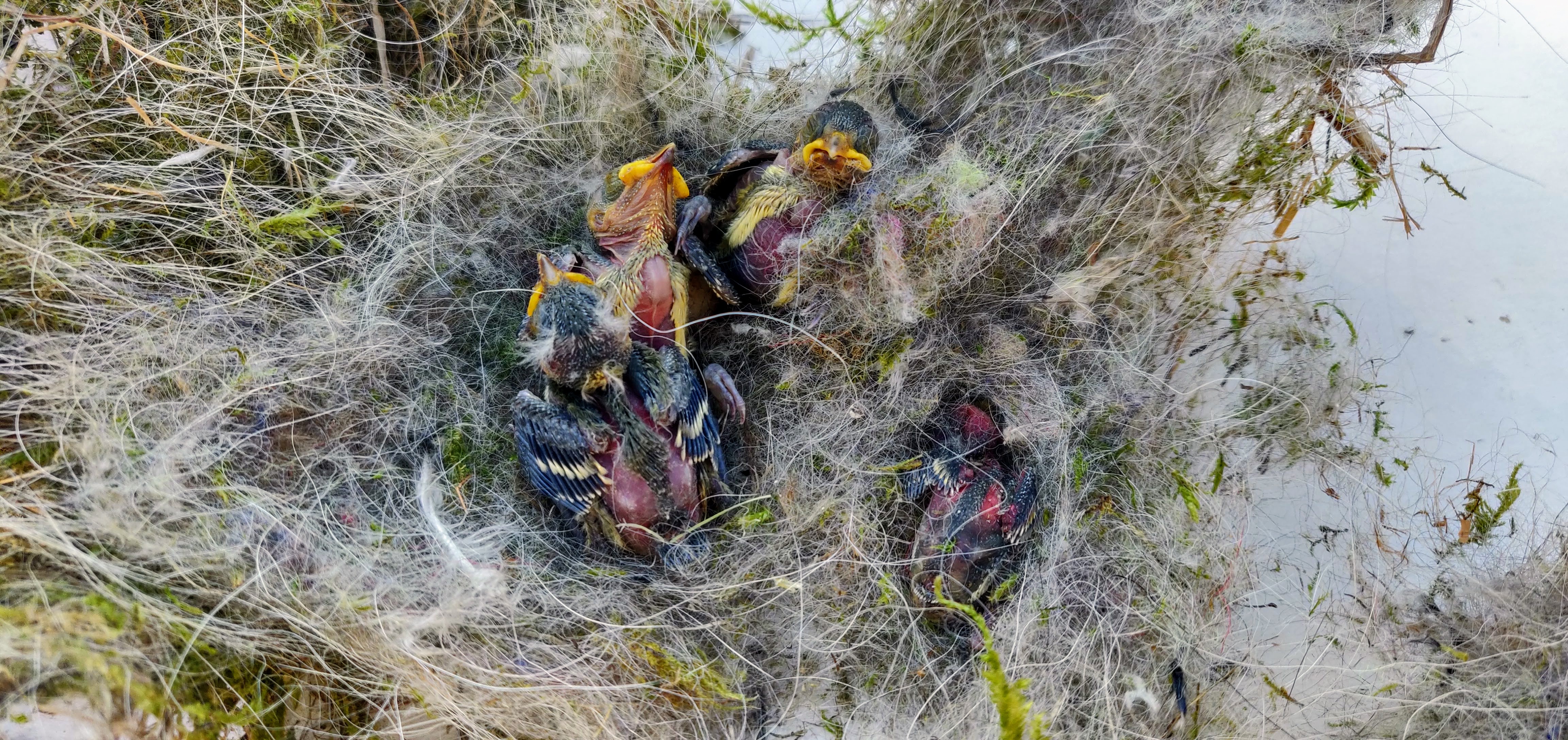 For two months we followed Julia & Enrique as they built their family: the first twig for the nest, the first egg, the incubation, and the very first chick. Today (13 May) this beautiful story comes to a sad end. Last weekend it was already clear that less and less life was stirring in the nest, and that the parents had stopped bringing food. Today we see no movement at all. We took the chicks from the nest, and we will make them available to the S.O.S. Mezen project. The use of pesticides against the box-tree moth is probably the cause of the nest failure, but we hope to get more certainty about that later.